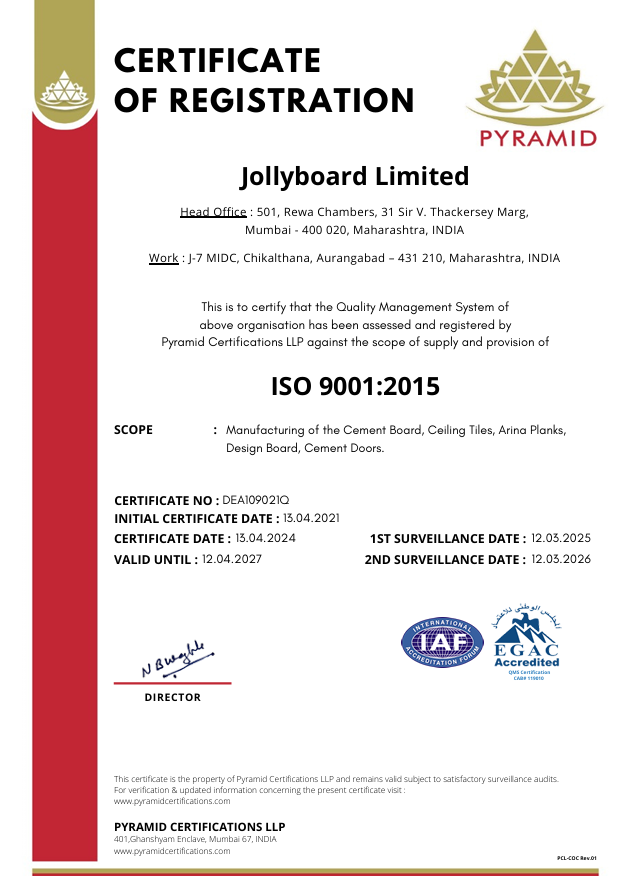 Jolly Fibre Cement Board is easy to handle and install, reducing installation time and increasing cost-savings. The excellent properties of impact, strength and water/moisture resistance compare with other flat sheets. Jolly Fibre Cement Board is perfect the choice for applications such as wall cladding, wall partitioning and walling in residential, commercial and industrial buildings, especially where cleanliness and hygiene is of high importance, such as schools and hospitals. Jolly Fibre Cement Board is also suitable for calibrating and coating with laminate, genuine veneer, glass OR any other superior finishing.